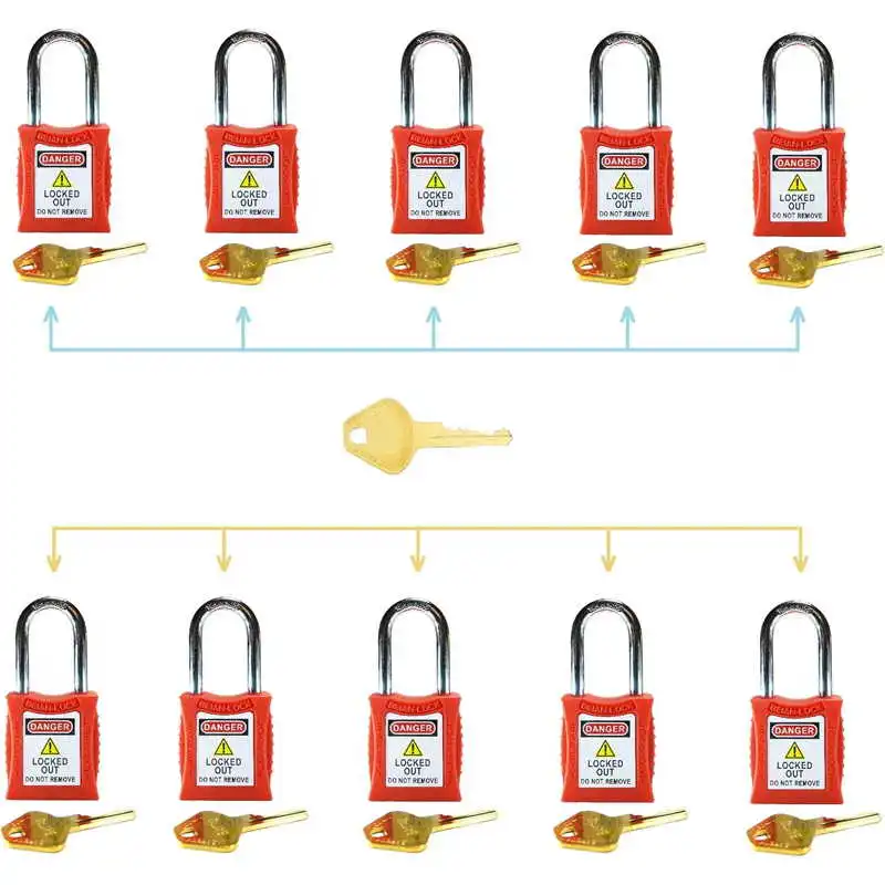 Each padlock in this 10 pcs set comes with its own unique key, and the master key allows you to open all padlocks for convenient access. This feature provides a flexible and convenient solution for outfitting multiple workstations with lockout padlocks, while ensuring maximum security.